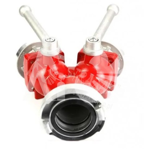 Rozdzielacz kulowy podwójny służy do rozdzielania strumienia wody z głównej części linii wężowej na dwie linie.